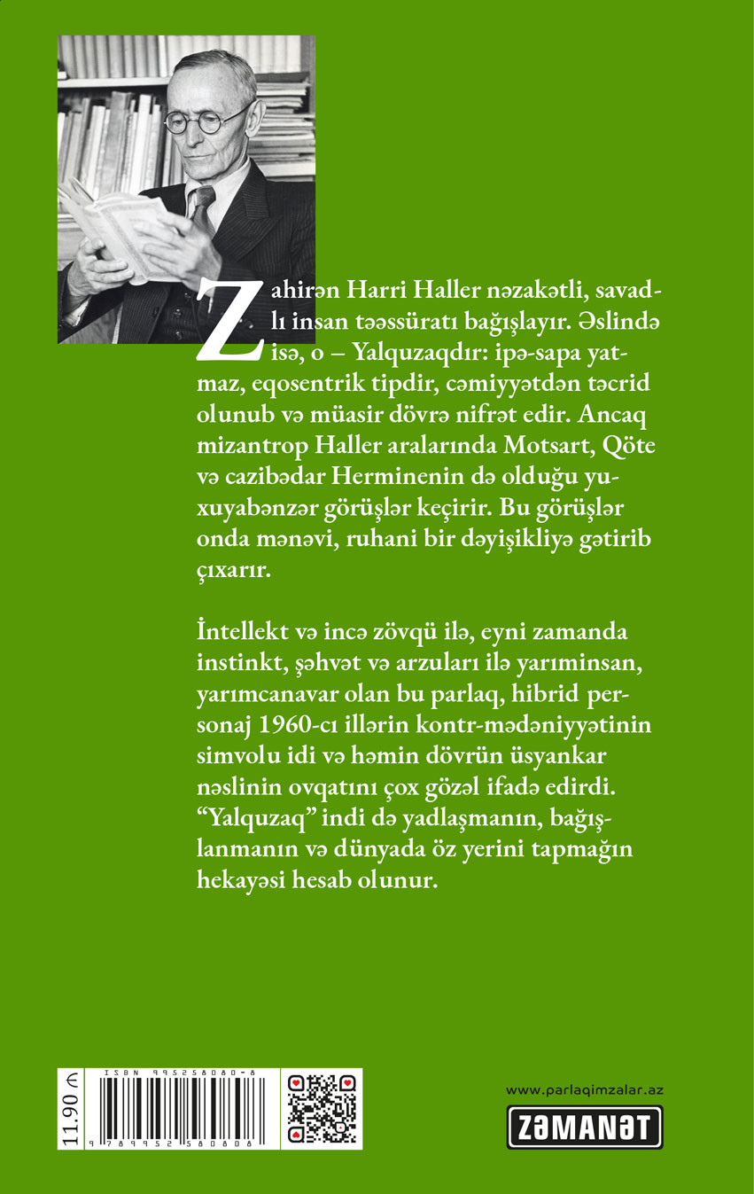 Zahirən Harri Haller nəzakətli, savadlı insan təəssüratı bağışlayır. Əslində isə, o – Yalquzaqdır: ipə-sapa yatmaz, eqosentrik tipdir, cəmiyyətdən təcrid olunub və müasir dövrə nifrət edir. Ancaq mizantrop Haller aralarında Motsart, Qöte və cazibədar Herminenin də olduğu yuxuyabənzər görüşlər keçirir. Bu görüşlər onda mənəvi, ruhani bir dəyişikliyə gətirib çıxarır.